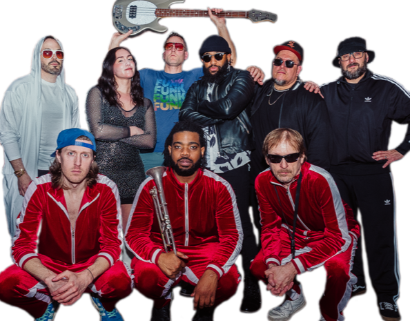 Forged in 2023 from a core of seasoned former bandmates, Funk’d Up is a powerhouse nine-piece ensemble dedicated to reviving the electrifying sounds of funk and disco. This isn't just a cover band; it's a full-sensory trip back to the era of spinning disco balls and light-up dance floors, delivered with modern precision and passion.