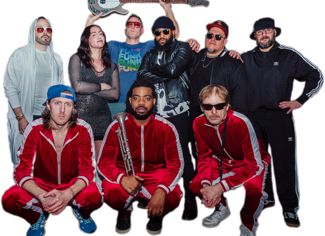 Forged in 2022 from a core of seasoned former bandmates, Funk’d Up is a powerhouse nine-piece ensemble dedicated to reviving the electrifying sounds of funk and disco. This isn't just a cover band; it's a full-sensory trip back to the era of spinning disco balls and light-up dance floors, delivered with modern precision and passion.